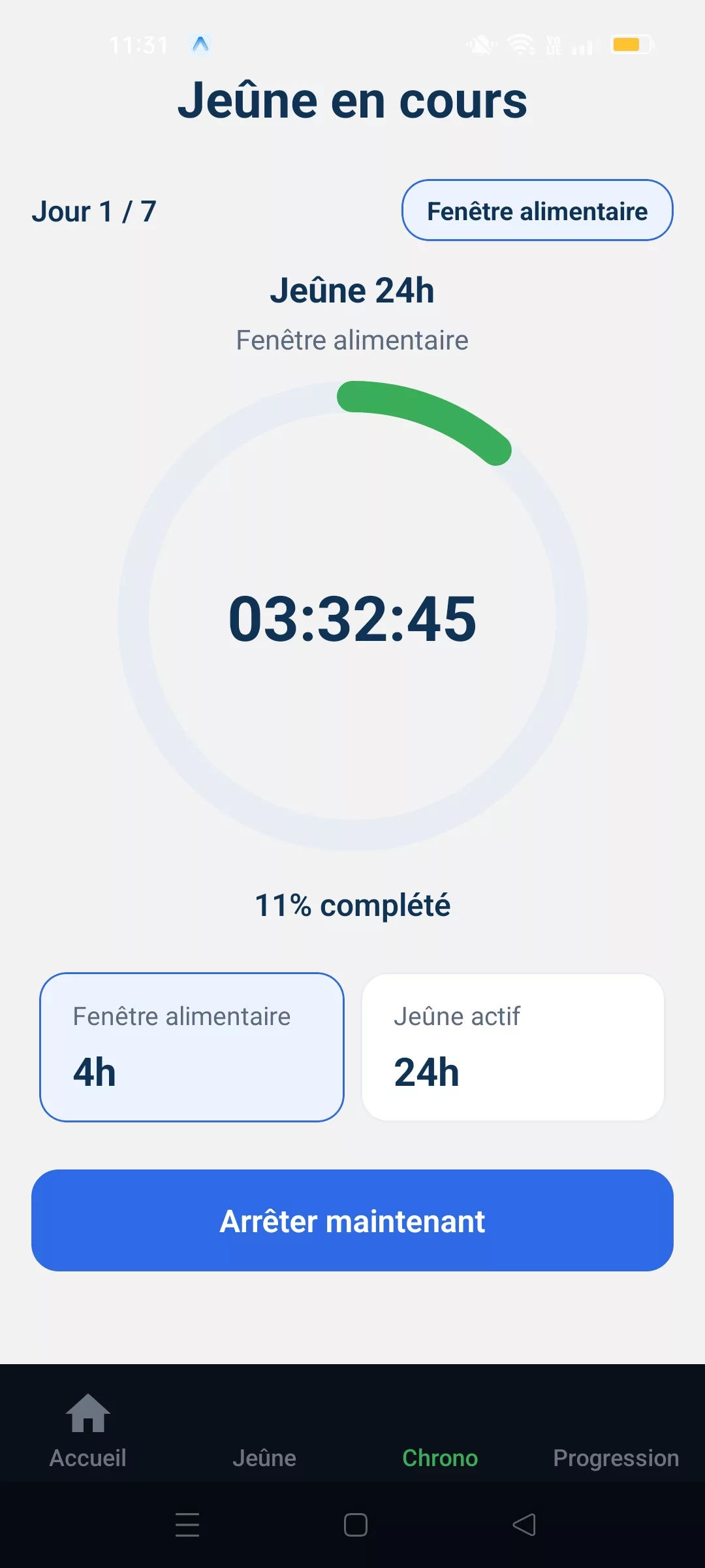 1) Lancer et suivre un chrono de jeûne